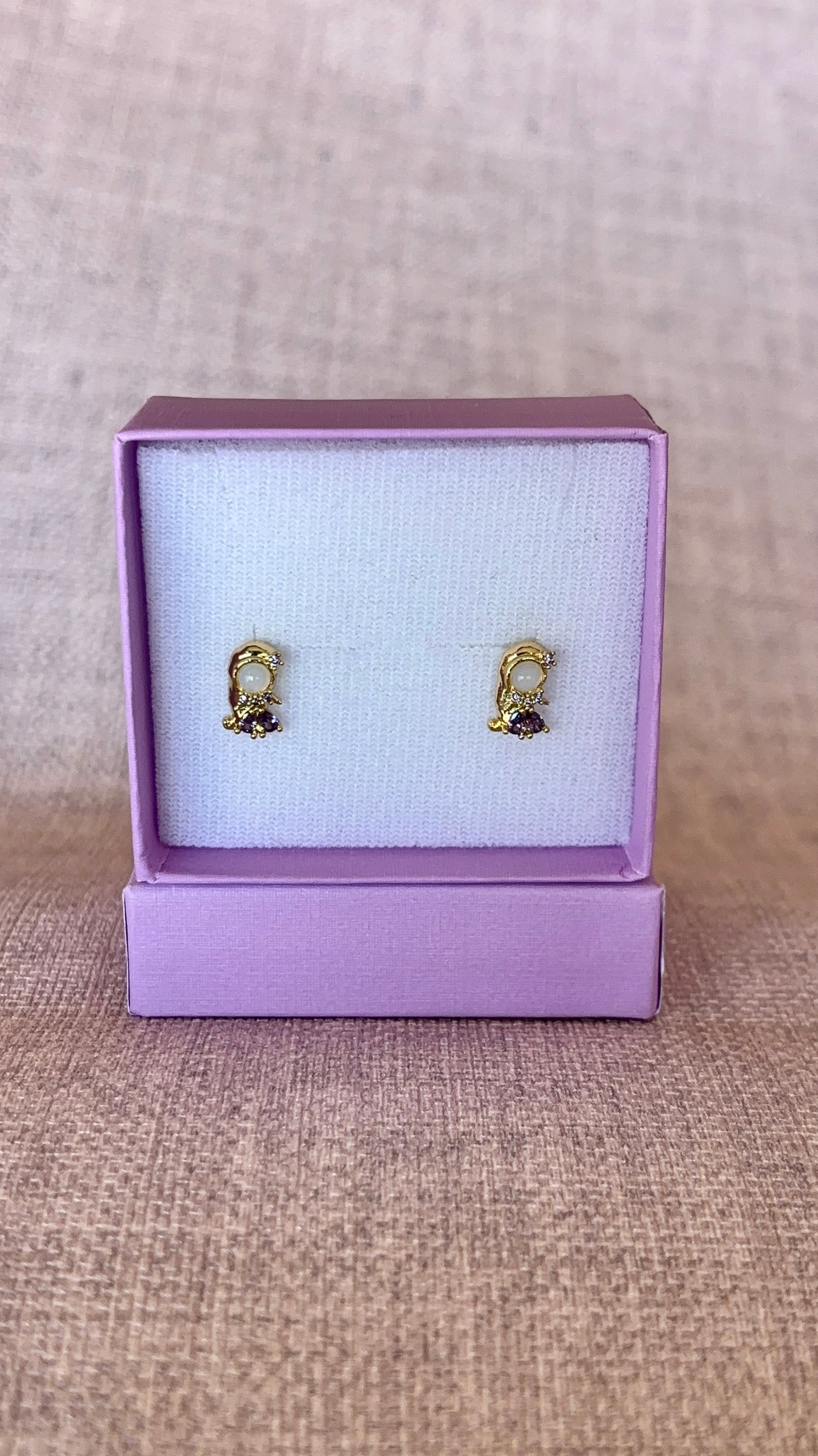 Aretes de la princesita Rapunzel, bañados en oro de 20k.