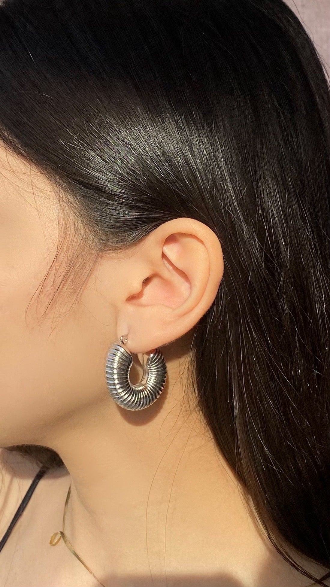 Arracada plateada con toques fruncidos para darle un toque casual a tus outfits.