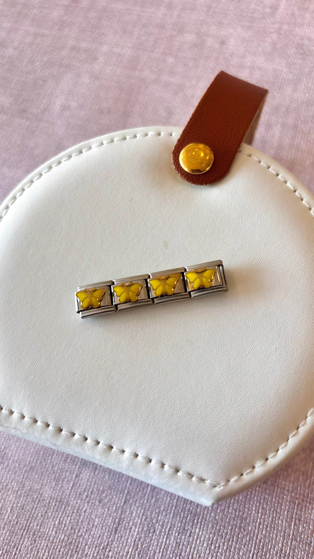 Charm para pulsera italiana de mariposa amarilla, acero inoxidable.